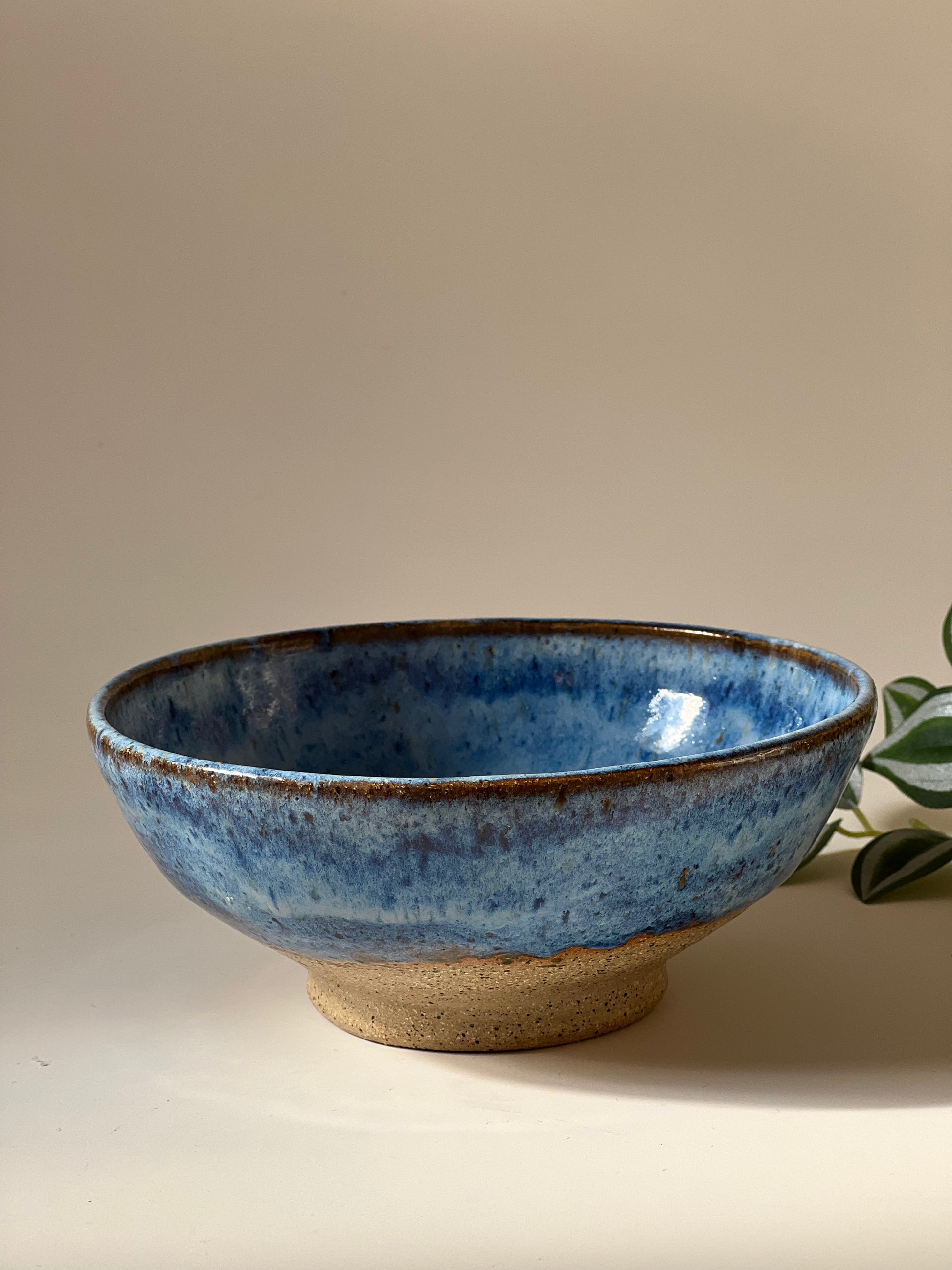 This shallow bowl is made of speckled brown clay. Thrown on the wheel ,trimmed and then fired at a higher temperature. It has two glazes layered on it. The outside is half glazed to feel the beauty of the speckled clay body. All of the pots are food safe, microwave safe and dishwasher safe .Although handwashing is recommended to make it last long.