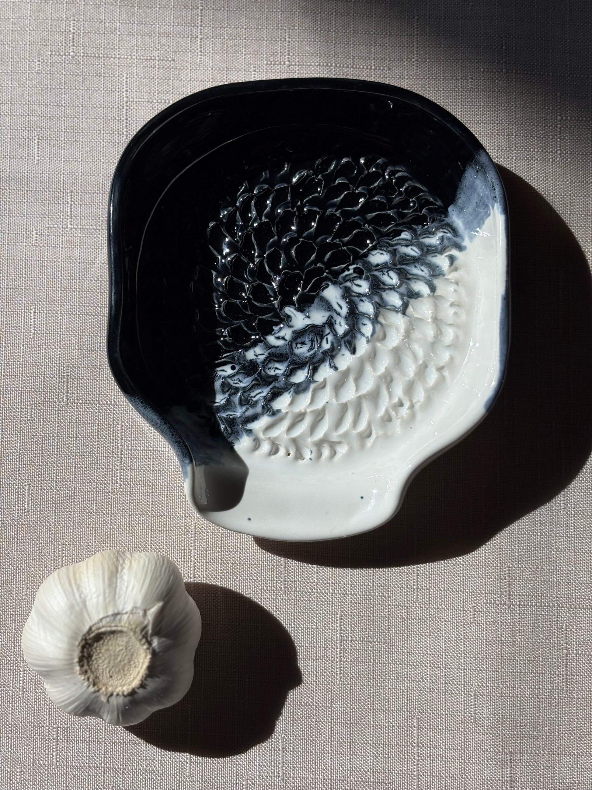 Wheel thrown with porcelain clay - Sharp and Bumpy textured to grate garlic, ginger, cheese, lemon zest effortlessly.