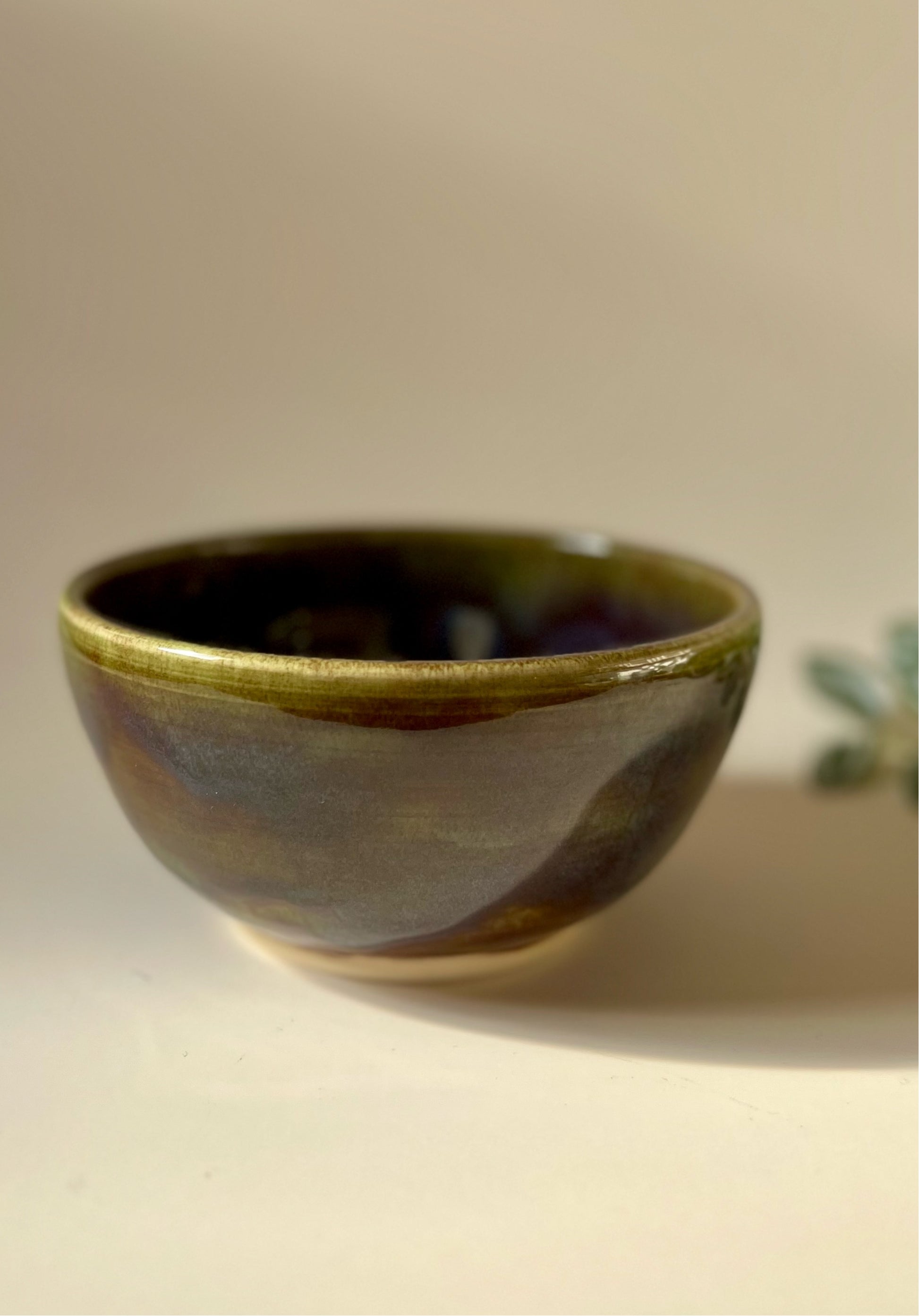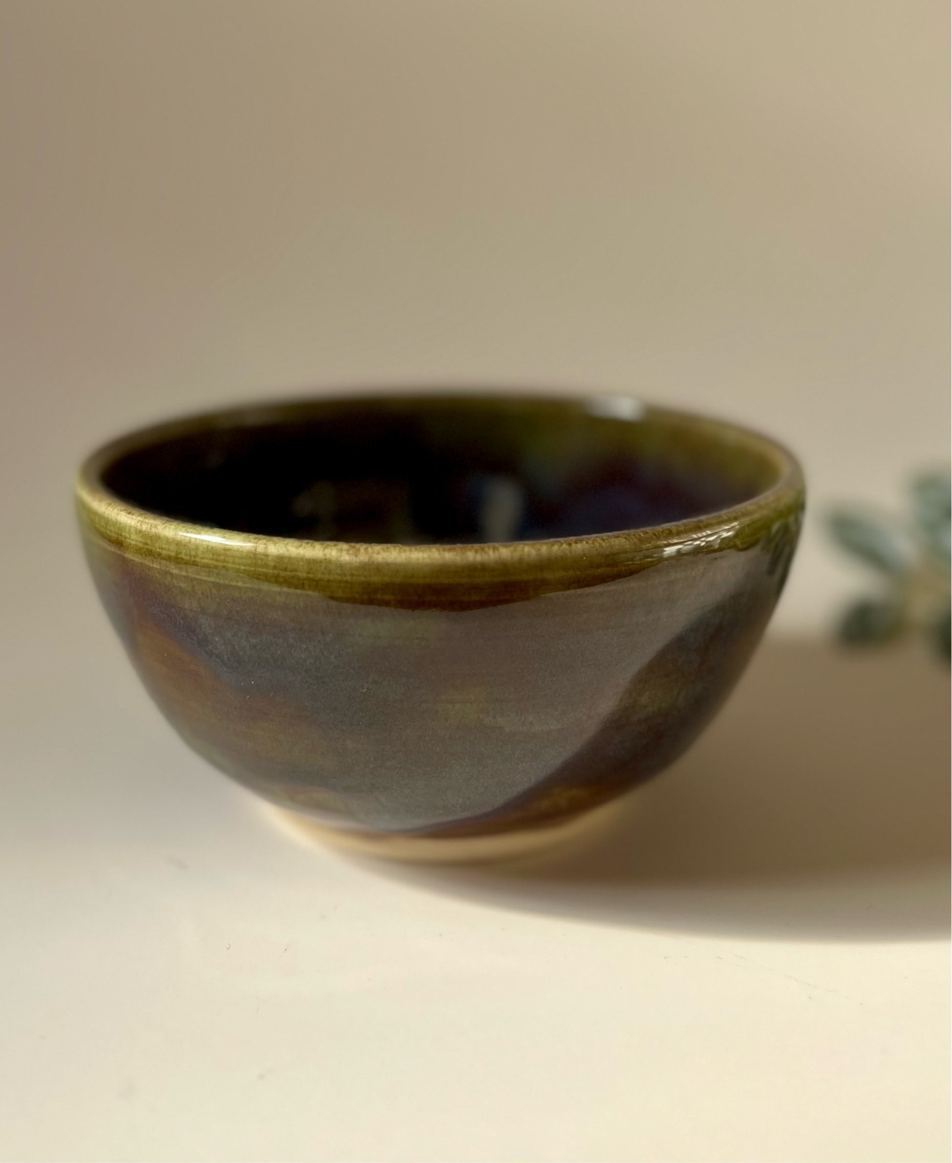 This bowl is made of stoneware clay. The glazes I used are inspired from the colors of nature. More than three glazes have been brushed on and fired to a higher temperature. All of the pots are food safe, microwave safe and dishwasher safe .Although handwashing is recommended to make it last long.