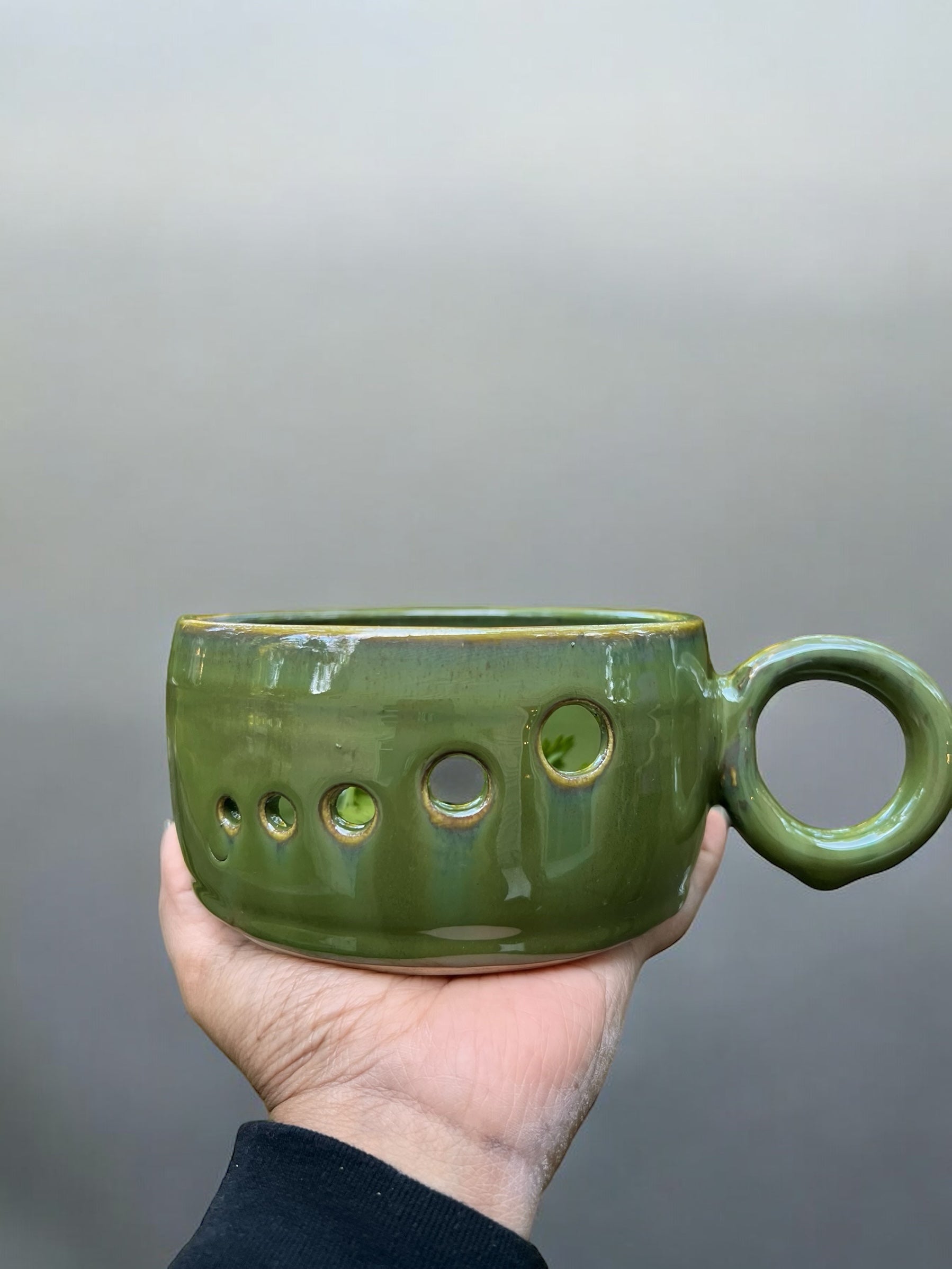 This Herb Stripper bowl is thrown and trimmed on the wheel, glazed and fired at Cone 6 which makes it food safe, microwave safe and dishwasher safe .Although handwashing is recommended to make it last long.