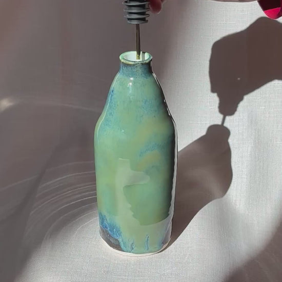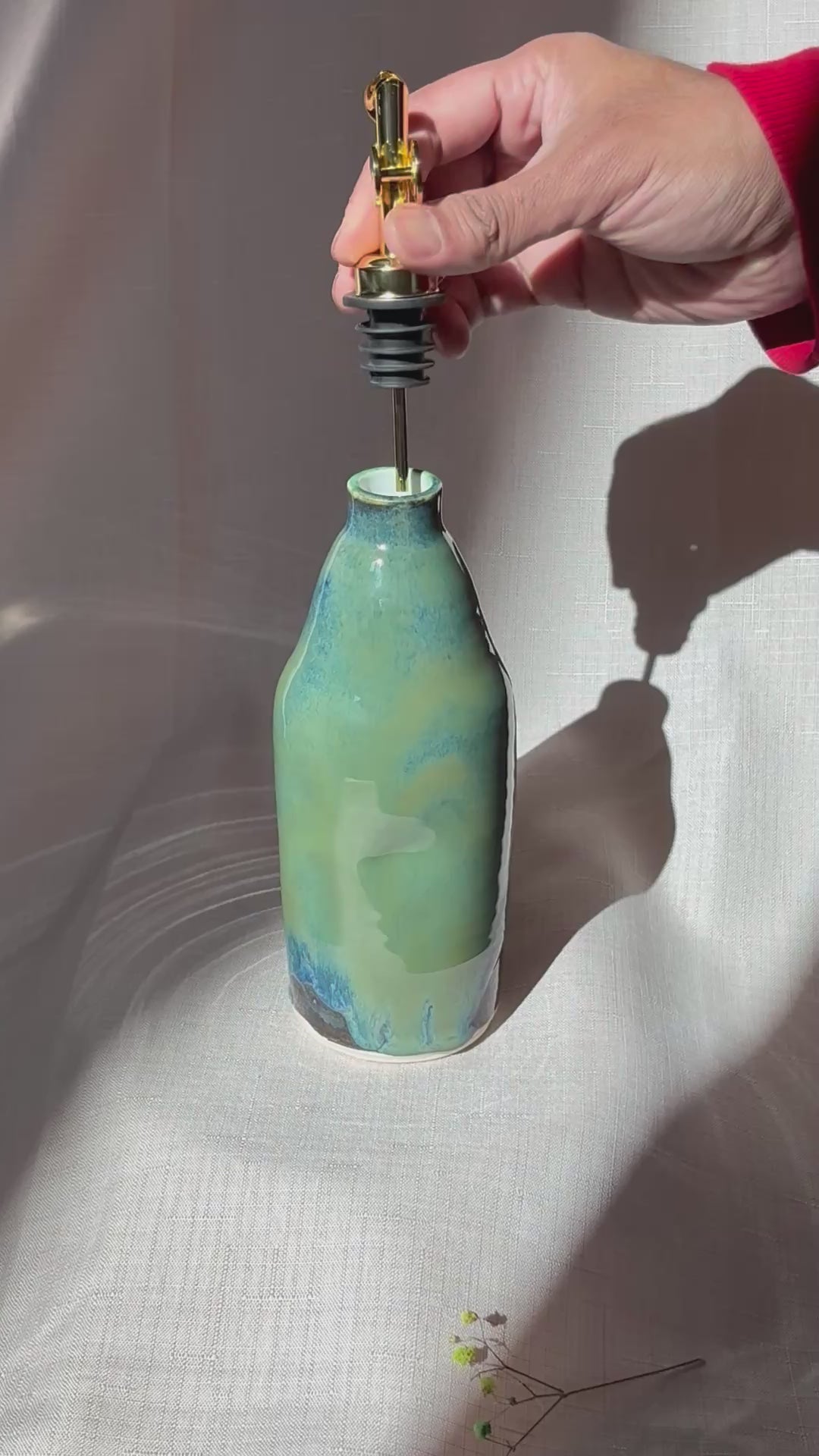 Wheel thrown ceramic olive oil pourers -Thrown with porcelain clay body. Perfect for storing/ using olive oil vinegar or other liquids. Adds artistic charm to the kitchen counter or dining table.