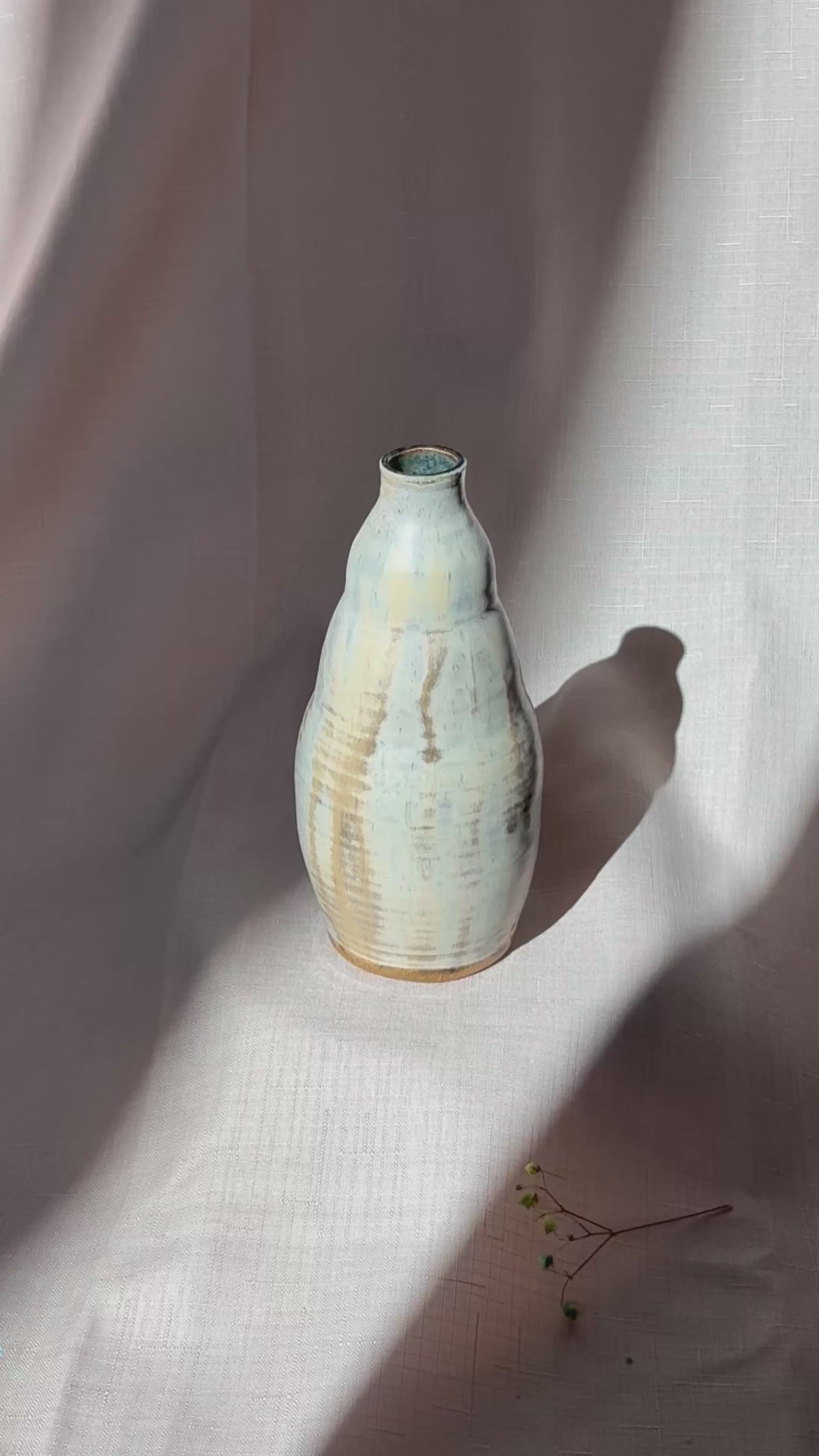 Wheel thrown ceramic olive oil pourers -Thrown with porcelain clay body. Perfect for storing/ using olive oil vinegar or other liquids. Adds artistic charm to the kitchen counter or dining table. It is 20 cm tall (26 cm with the pourer spout)