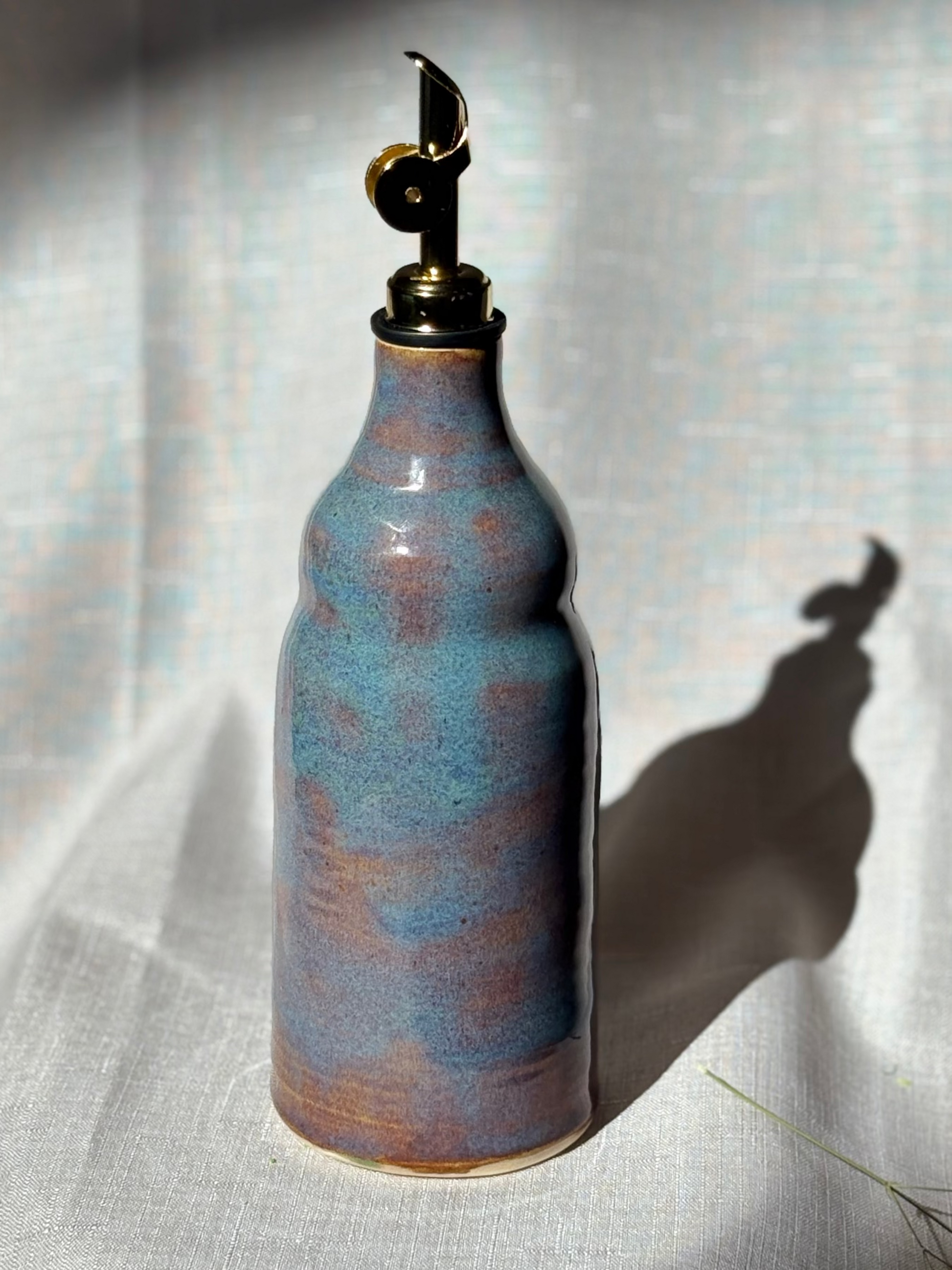 Wheel thrown ceramic olive oil pourers -Thrown with porcelain clay body. Perfect for storing/ using olive oil vinegar or other liquids. Adds artistic charm to the kitchen counter or dining table.